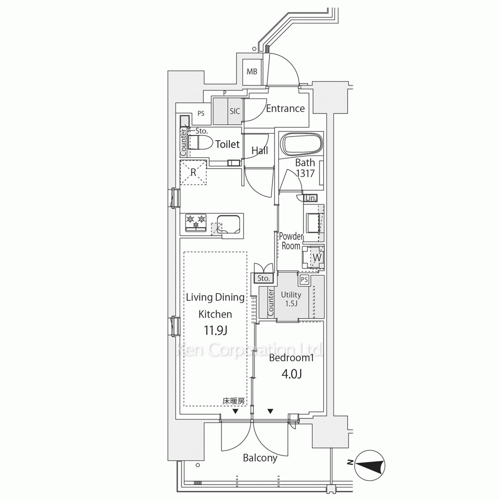シューズインクローゼット、食洗器、LDKに床暖房付きで設備充実。13階建ての最上階のお部屋。