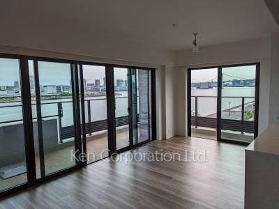 天井高2.7Mの開放感あるリビング。3方向角部屋のため、お台場、東京湾VIEWは圧巻!ハイルーフ駐車場・トランクルーム付。