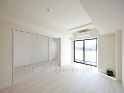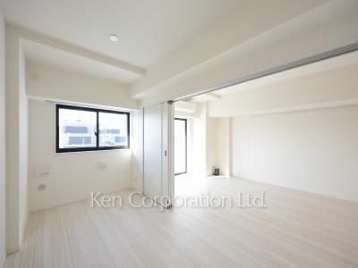 キッチンがお部屋の方を向いているため、料理の際は開放感を感じることが出来ます。また、ベッドルームの扉はスライド式の為、開けておけばお部屋を広く使うことも可能です(約16.6帖)。