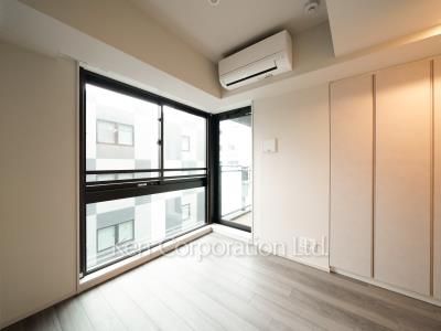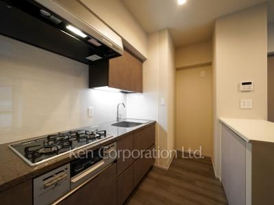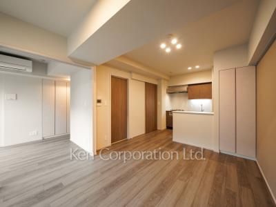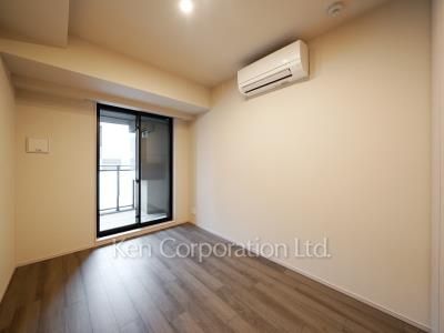 フローリング仕上げのお部屋。ダウンライト照明は集中配灯によりメリハリのある明るさを演出しています。浴室乾燥機やガスコンロ、エアコンなど都市生活で人気の設備を備えています。