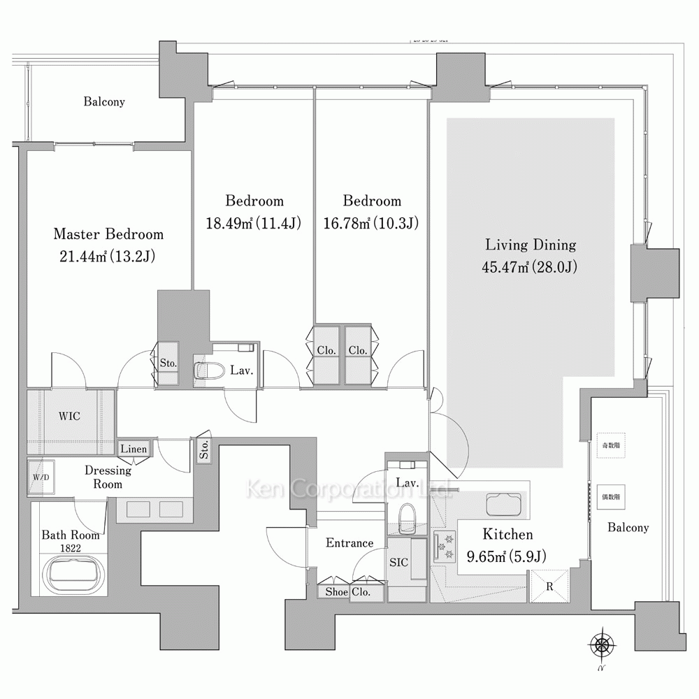 | 特徴 | バルコニー、 2面採光、 2面バルコニー、 LDK20帖以上、 床暖房 |