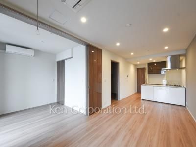 フローリング仕上げのお部屋。ラウンジ・コワーキングスペースなどの共用施設を備えています。中目黒の賑わいと利便性を体感したい方におすすめのロケーションの賃貸マンションです。