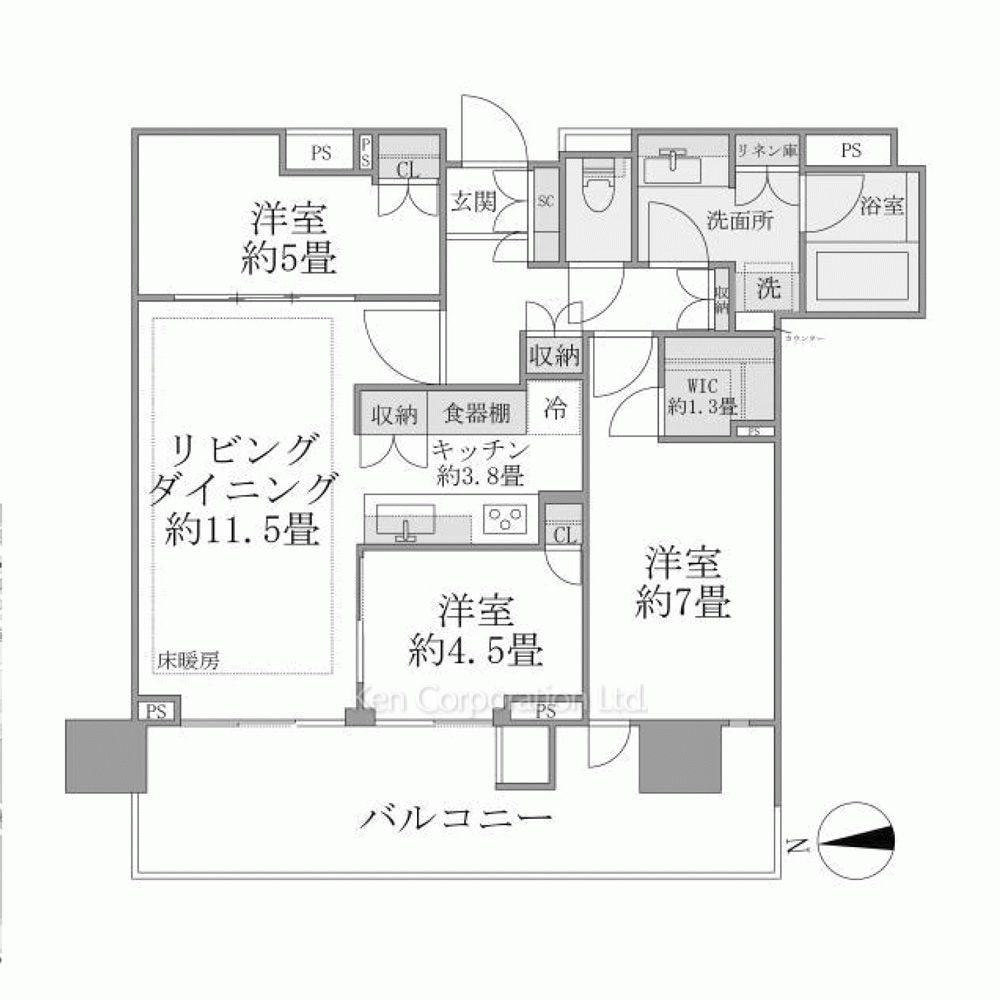 | 間取り / 方位 | 3LDK+WIC / 北東 |