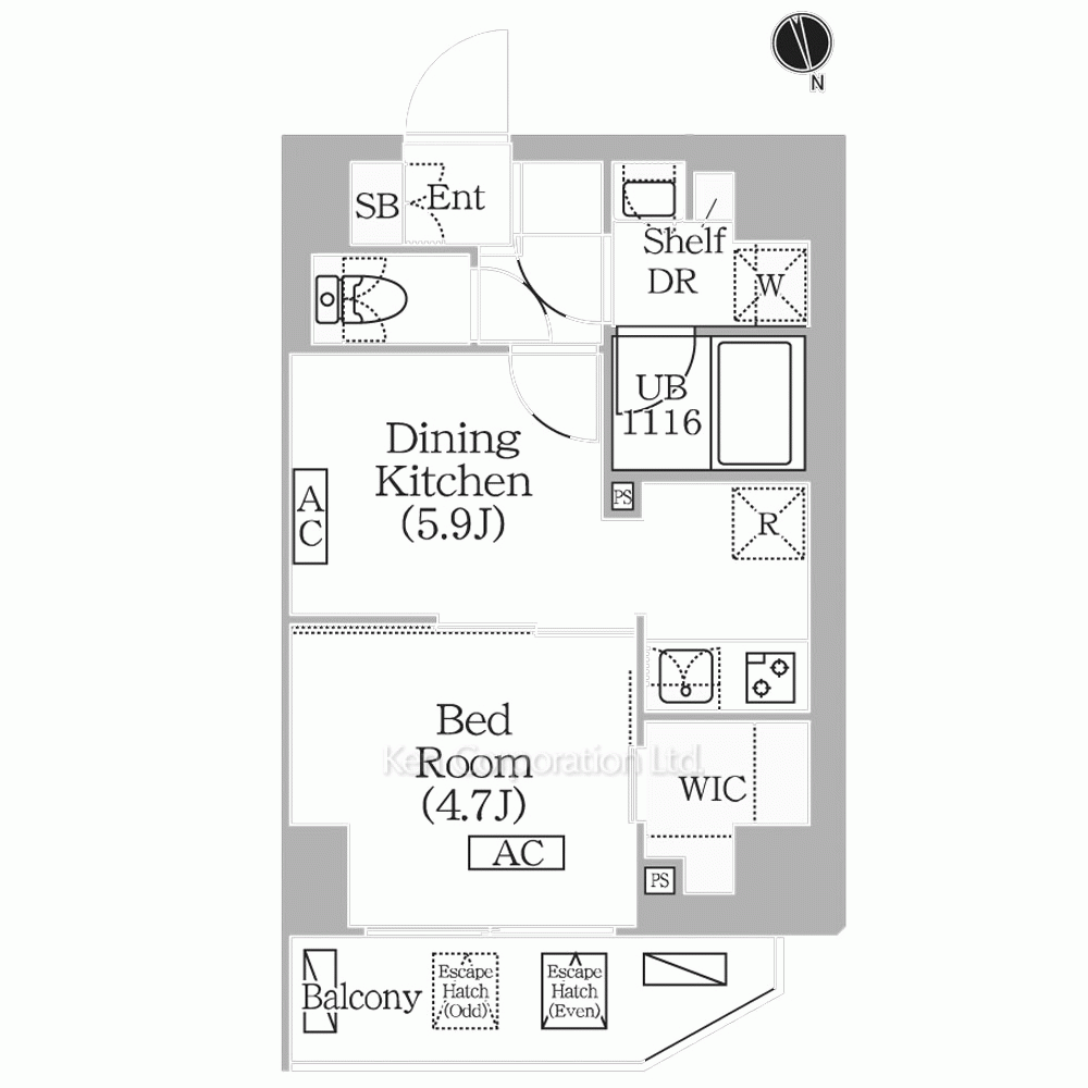 | 間取り / 方位 | 1DK+WIC / 北東 |