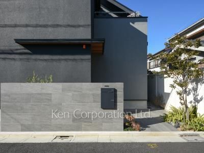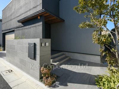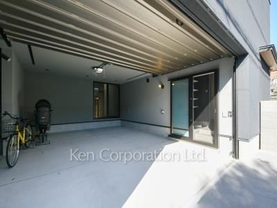 黒基調でスタイリッシュな外観。東西南北に窓があり風通し良好でございます。シャッター付き駐車場から室内にも出入り可能。【家具家電付き】