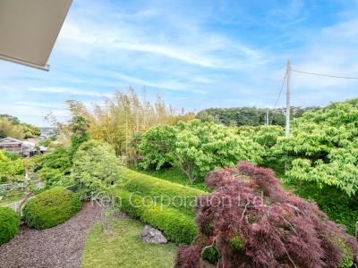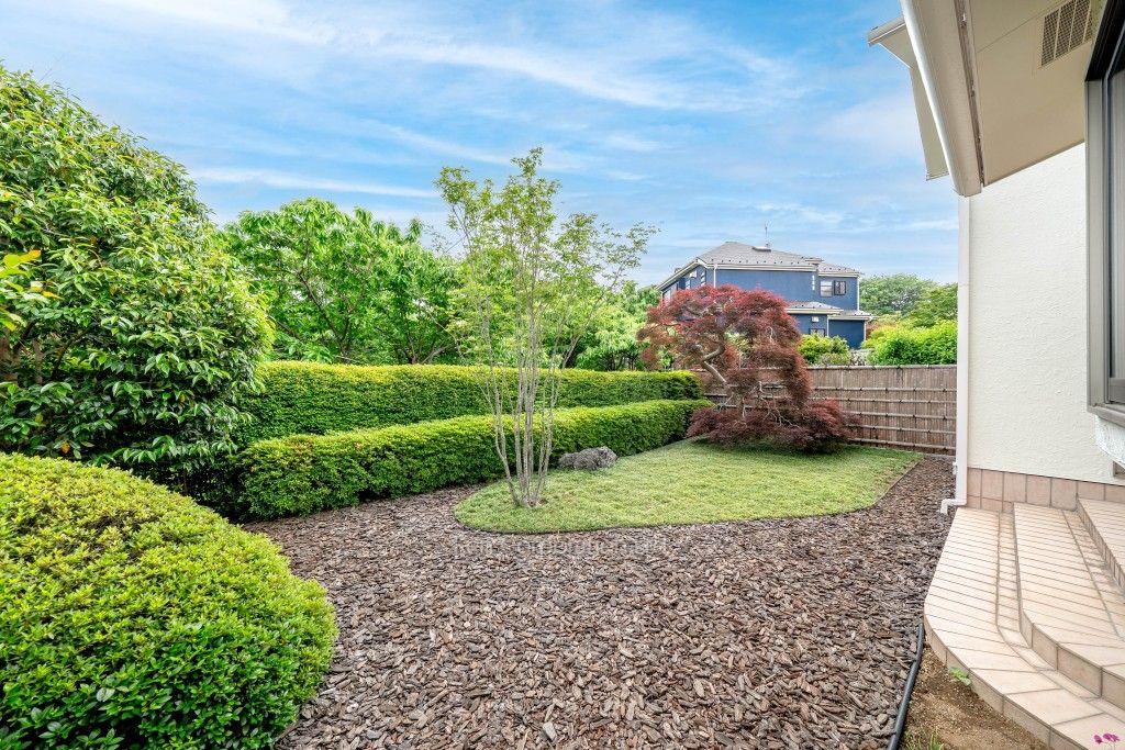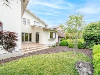 四季を感じるゆとりある庭と隣接地には果樹園が広がり、陽当たりや開放感を感じることができる閑静な邸宅