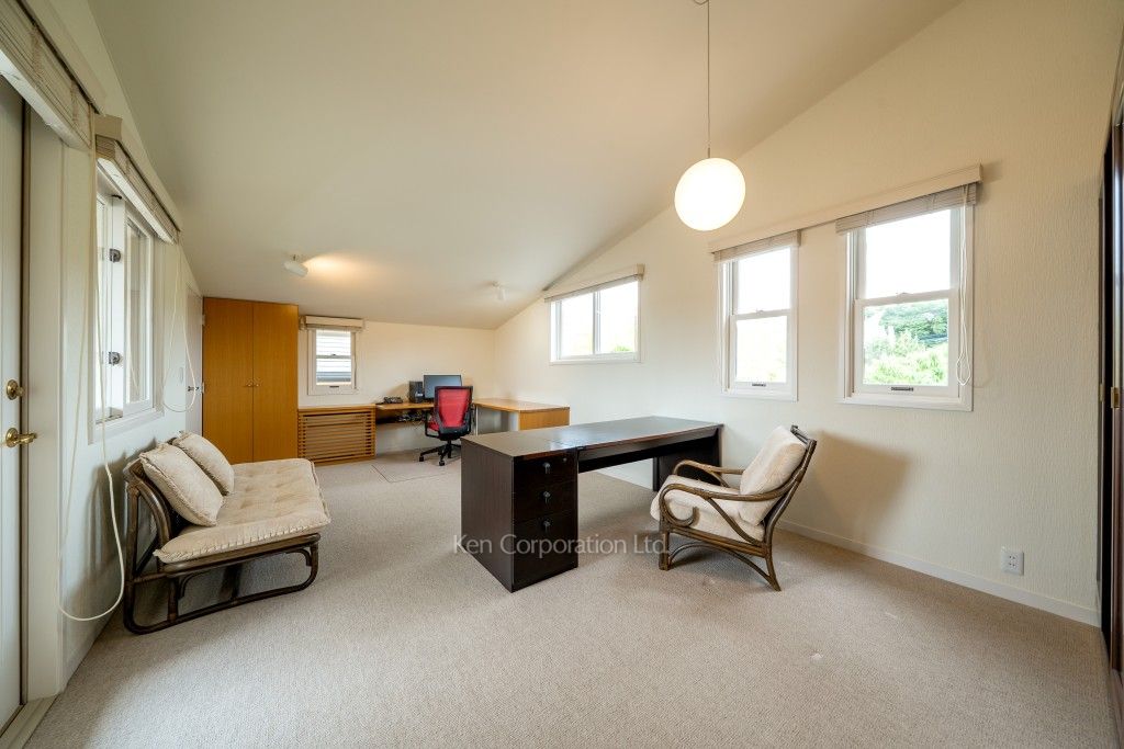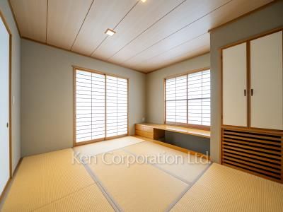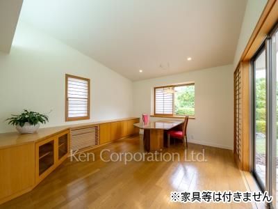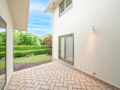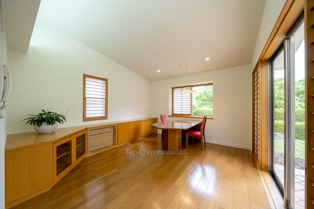 リビングダイニングは合計約22帖となりおすすめな空間です。中庭を中心に光が入り各居室に南側の採光を取り入れることができます。2階のベッドルームは約12帖と14帖とゆとりがあり、ベッドルームだけではなくデスクや趣味のスペースを確保することもできます。収納も多く、クロークやキッチン脇のパントリー、大型WIC等ございます。2階から見下ろす南側の抜けた借景は遠望を楽しむことができ、春は桜も望めます。また、冬は和室の雪見障子から覗く雪化粧も大変おすすめです。