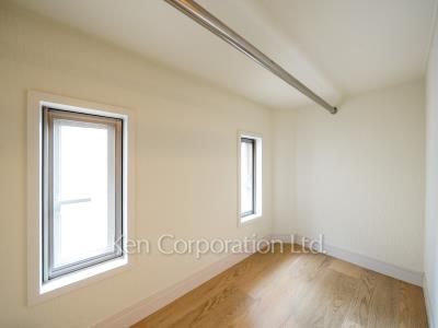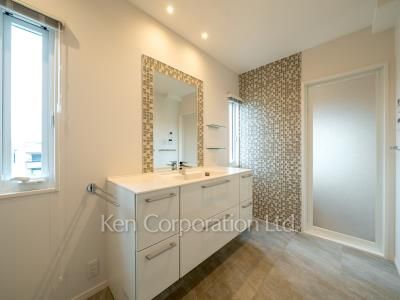 耐震性に優れた2×4工法となります。重厚感ある外観とシャッター付きガレージも本物件の一つの特徴です。
