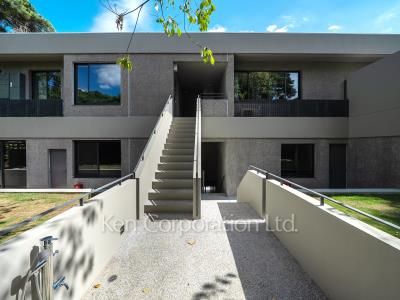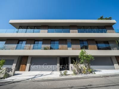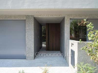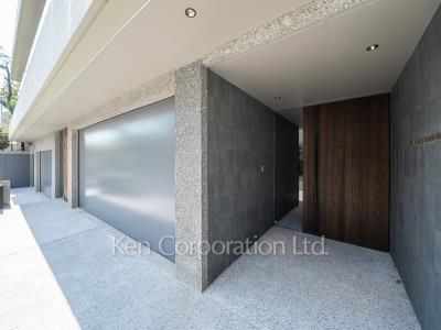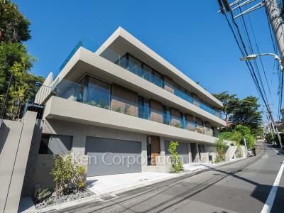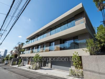 邸宅街田園調布5丁目。緑多き景観の中に佇む全3世帯の低層レジデンス、アースグレイに包まれた清楚な外観。各住戸に専用エントランス、シャッター付き平面駐車場(2台分)を設け、プライベートな空間を確保しています。