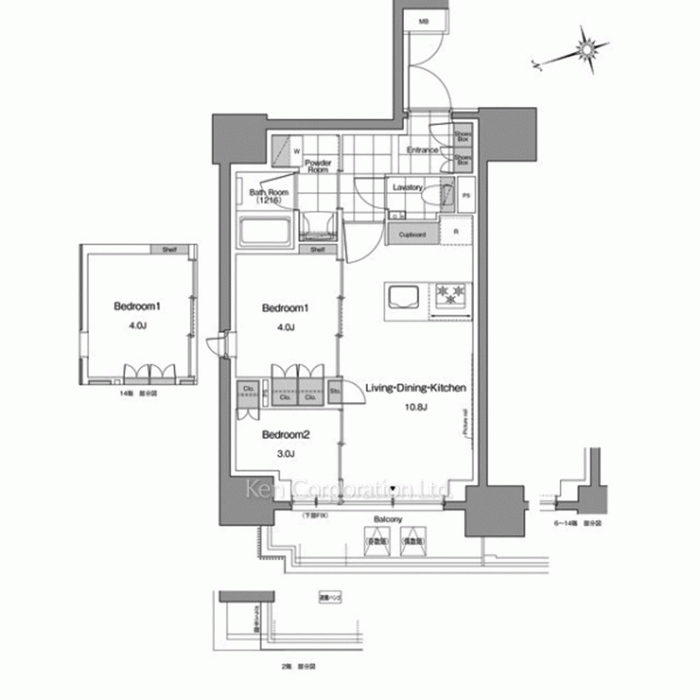 | 階建 / 所在階 | 地上14階建 / 14階部分 |