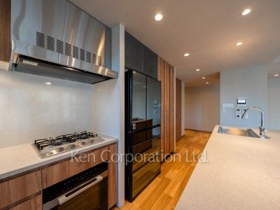 | 部屋設備 | 全室エアコン、 給湯、 洗濯乾燥機、 浴室乾燥機、 追焚、 洗浄機能付便座、 バストイレ別、 洗面所独立、 トランクルーム、 ガスコンロ、 コンロ4口、 オーブン、 ディスポーザー、 食洗機、 浄水器、 冷蔵庫、 駐輪場:ラックスライド式 各住戸2台まで。初回登録料1,100円(税込) |