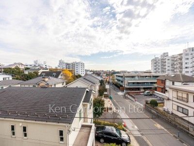 ■南傾斜の立地。第一種低層住居専用地域の低層住宅を望む