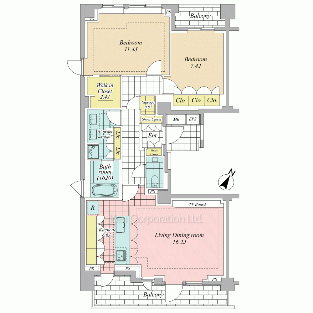 ■最上階南西角住戸。約100.15平米の2LDK