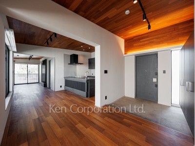 パッシブデザインを基盤に玄関-土間-バルコニーをひとつながりにした、光と風、緑を感じられる空間。ペット飼育相談可。