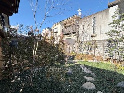 砧8丁目に所在する敷地面積548.39㎡に建つ日本庭園と茶室がある和風戸建。室内設備入替や耐震補強済み(2026年2月完了予定)。茶室から望むお庭にはツツジや桜が植えられています。