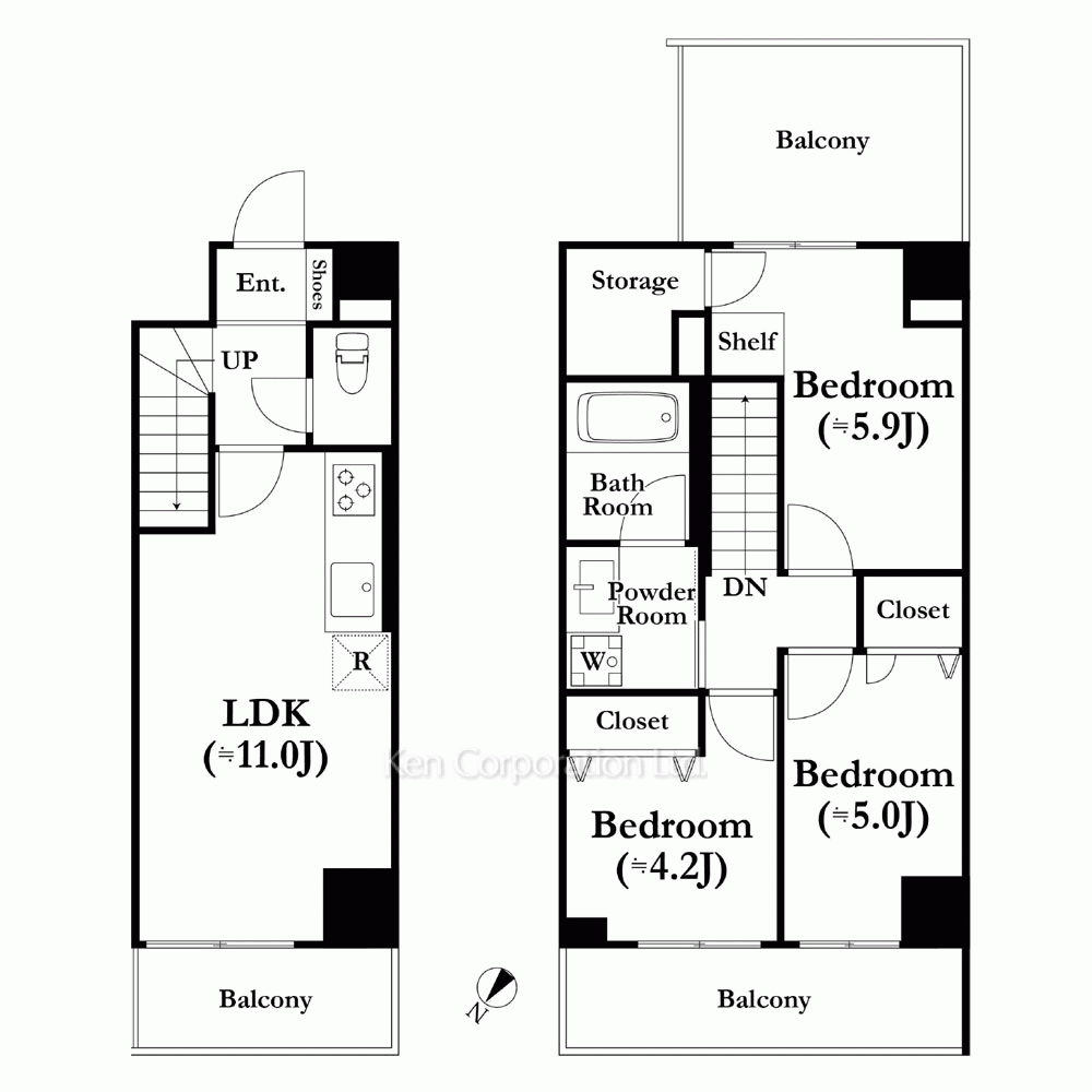 | 特徴 | メゾネット、 バルコニー、 2面採光、 2面バルコニー |
