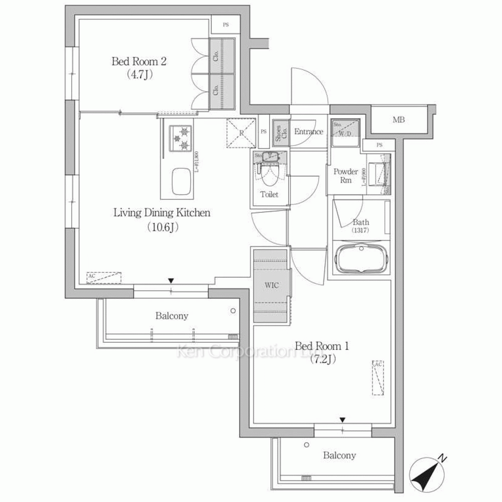 | 間取り / 方位 | 2LDK+WIC / 東南 |