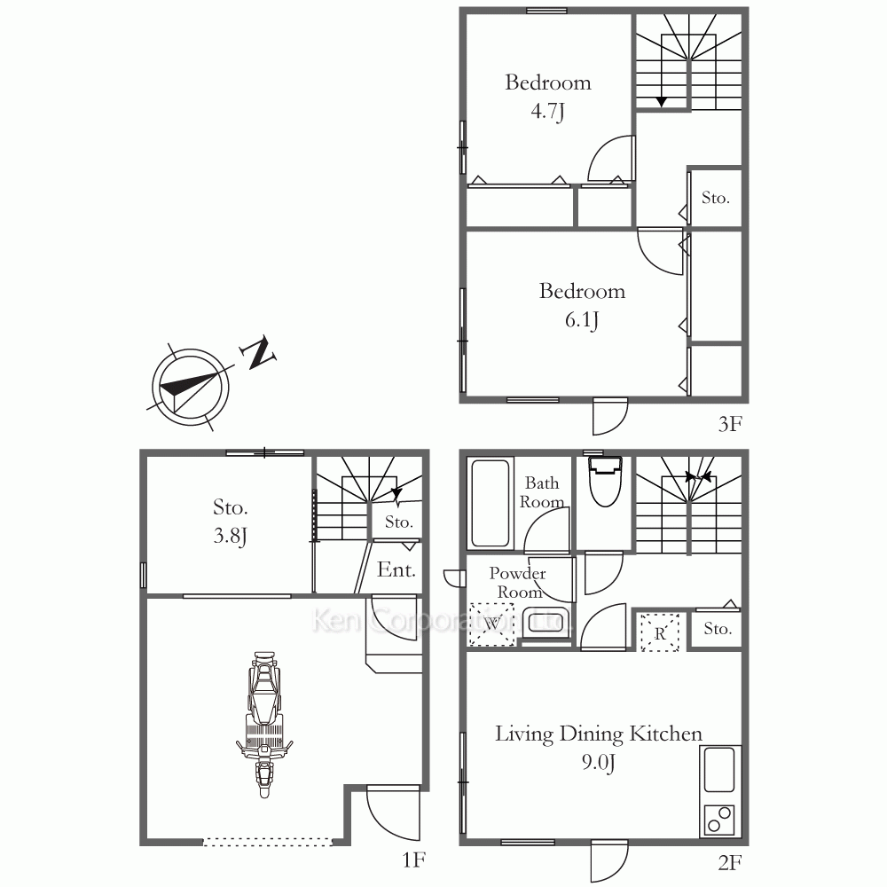 | 階建 | 地上3階建 / 連棟 |