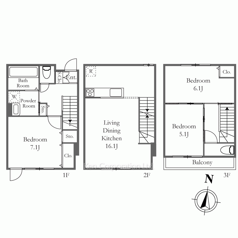 | 階建 | 地上3階建 / 連棟 |