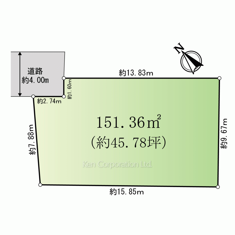 北東側 幅員約4m 接面約4.3m(位置指定) |