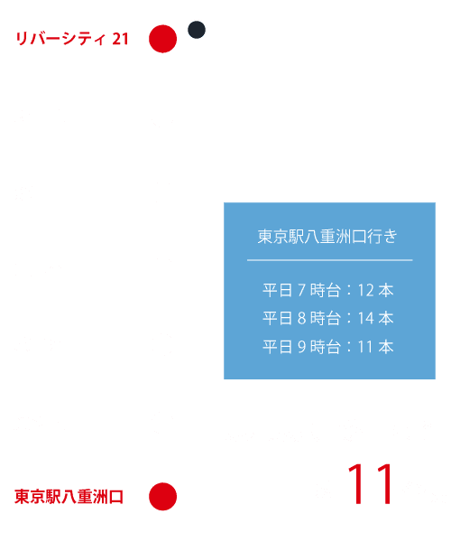 ※バスの所要時間は時間帯により異なります。 また、乗換・待ち時間等は含みません。
