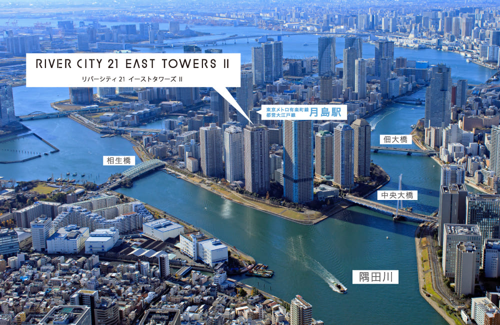 リバーシティ21イーストタワーズⅡ付近からの空撮写真