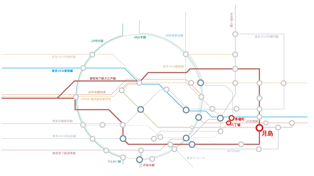 また約2km圏の東京駅をはじめ、