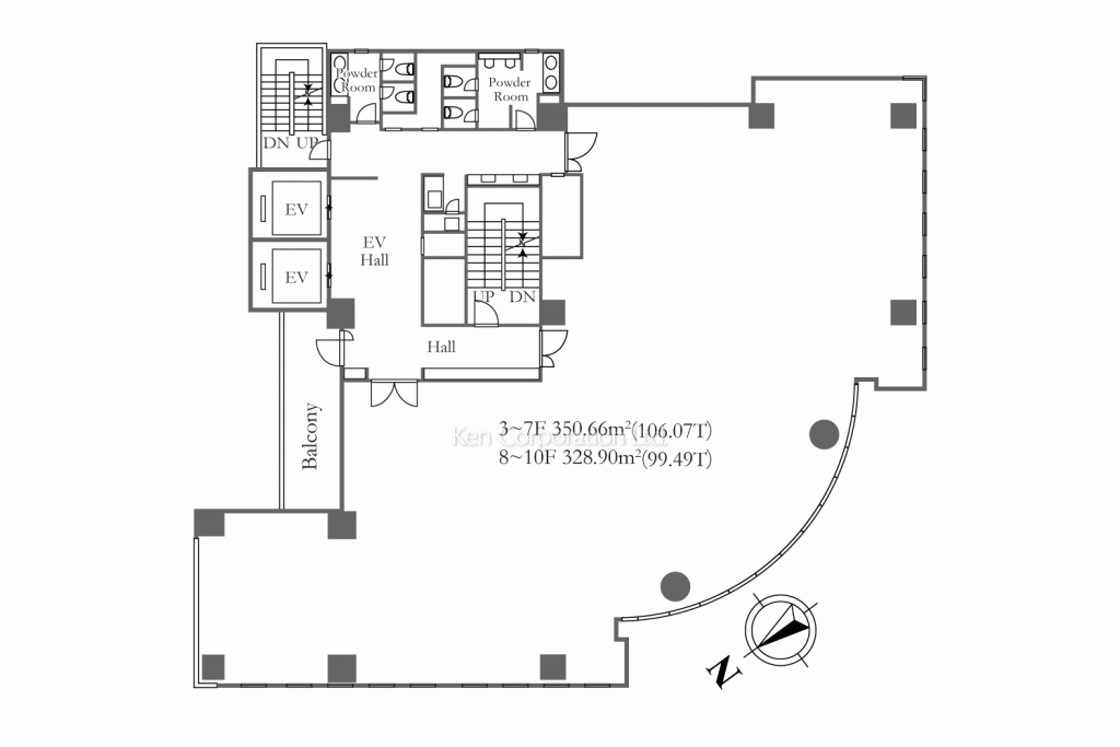 東京メトロ銀座線・半蔵門線・千代田線「表参道」駅徒歩1分とアクセスに恵まれ、渋谷や銀座、日本橋、大手町、霞が関などへダイレクトにアプローチできます。室内はアール状に設計したガラスコーナーで採光にも優れた、約100坪の無柱空間。骨董通り入り口の視認性の高いオフィスビルです。