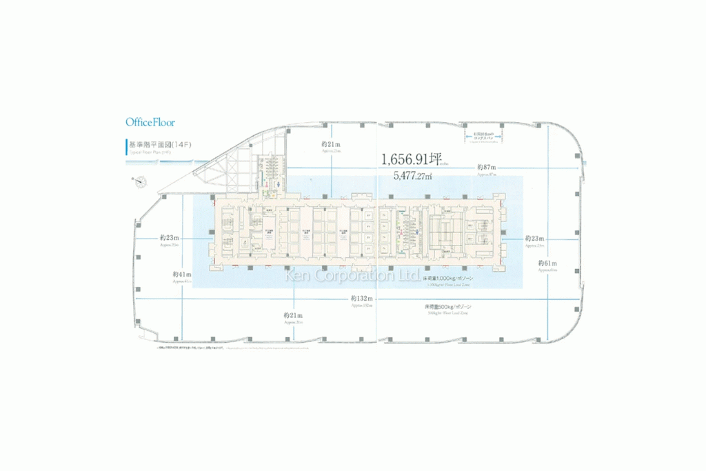 ワンフロア5,400㎡の広大なフロア、窓面も大きく開放的なオフィス空間を演出することができます。無停電設備があるため、災害時や電気点検時の停電対策もできます。更に、免震構造を採用しており、BCP対策も高レベルです。