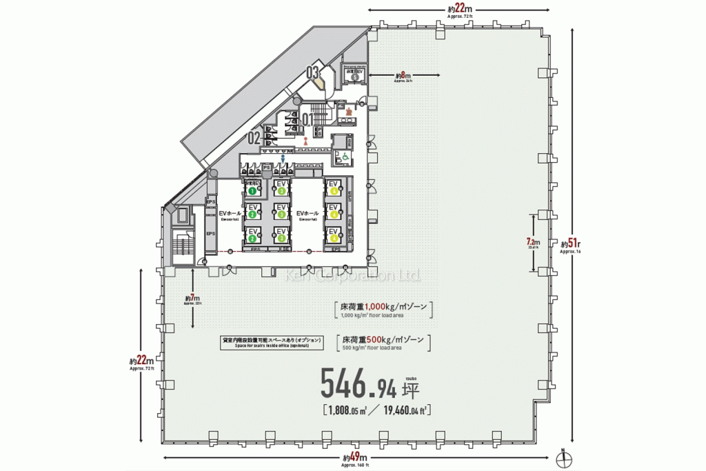 ■2000坪超の広大な敷地に展開■540坪超の整形無柱フロア■免震構造+直接基礎(安定した地盤)