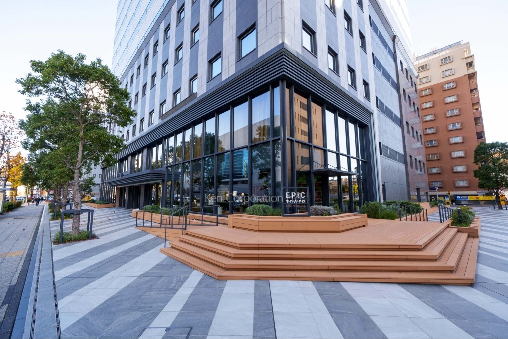 EPIC TOWERは、オフィス街として進化を続ける新横浜に所在しています。1階には地元神奈川県産の木材を使用したラウンジ、9階には会議室やワークブースを備えたシェアオフィスがあり、変化し続けるビジネスニーズに柔軟に対応するオフィスビルです。
