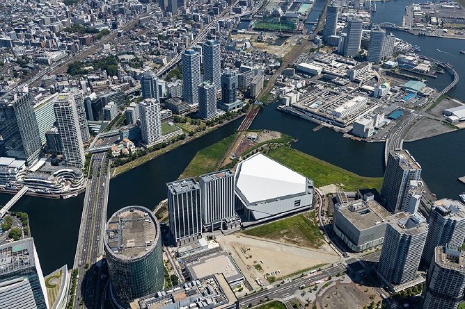 「同じ敷地『ミュージックテラス』内には2023年9月に開業、世界的にも注目を集めた2万席の音楽アリーナ『Kアリーナ横浜』、横浜初進出となる『ヒルトン横浜』があり、敷地が横に伸びているため、風景としてインパクトがあり、近づくにつれて広がりを感じるようになっています。」とケン・コーポレーション企画部の前川直之氏。